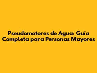 Pseudomotores De Agua: Guía Completa Para Personas Mayores