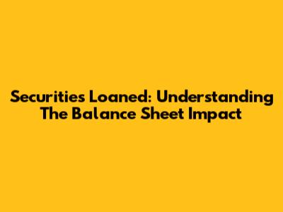 Securities Loaned: Understanding The Balance Sheet Impact