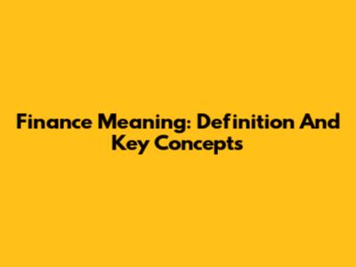 Finance Meaning: Definition And Key Concepts