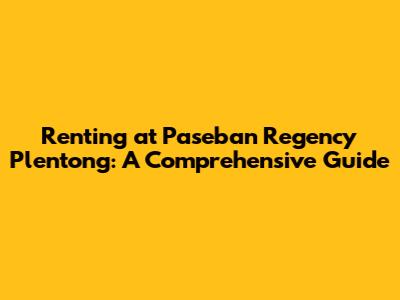 Renting At Paseban Regency Plentong: A Guide
