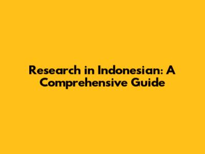 Research In Indonesian: A Comprehensive Guide