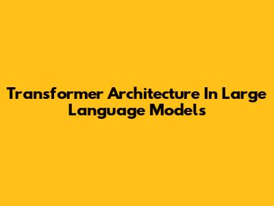 Transformer Architecture In Large Language Models