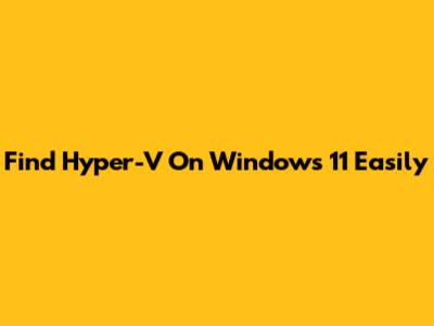 Find Hyper-V On Windows 11 Easily