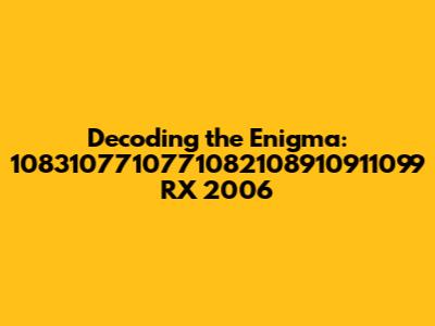 Alright guys, let's dive headfirst into this numerical soup: 1083107710771082108910911099 RX 2006. What does it all mean? Well, on the surface, it looks like a jumble of numbers and letters, but let's break it down and see if we can extract some juicy information. The "RX 2006" part is relatively straightforward; it likely refers to a vehicle model, possibly a Lexus RX produced in 2006. But those preceding numbers? That's where things get interesting. It could be a part number, a serial number, or even some internal code used by the manufacturer or a mechanic.