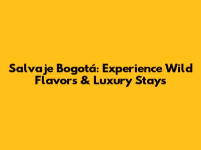 Salvaje Bogotá: Experience Wild Flavors & Luxury Stays