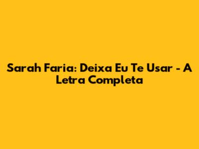 E aí, galera da música! Hoje a gente vai mergulhar de cabeça em um som que tá conquistando geral: "Deixa Eu Te Usar" da Sarah Faria. Sabe aquela música que gruda na cabeça e faz a gente querer cantar junto a cada refrão? É bem essa! Se você tá procurando a letra completa pra não perder nenhuma palavra e cantar com a Sarah a plenos pulmões, chegou no lugar certo. Bora decifrar essa letra juntos e entender o que faz esse hit ser tão especial.