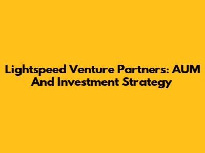 Lightspeed Venture Partners: AUM And Investment Strategy