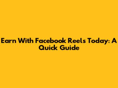 Earn With Facebook Reels Today: A Quick Guide