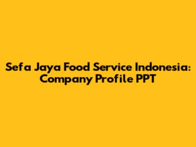 Sefa Jaya Food Service Indonesia: Company Profile PPT