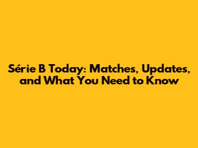 Série B Today: Matches, Updates, And What You Need To Know