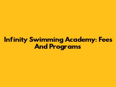 Infinity Swimming Academy: Fees And Programs