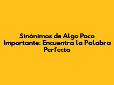 Vamos a empezar con los sinónimos más comunes de "algo poco importante". Aquí te presento una lista con sus matices para que puedas elegir el que mejor se adapte a tu necesidad: