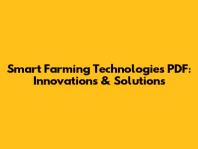 Smart Farming Technologies PDF: Innovations & Solutions