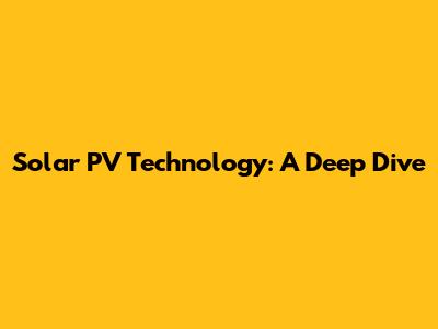 Solar PV Technology: A Deep Dive