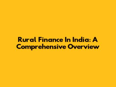Rural Finance In India: A Comprehensive Overview