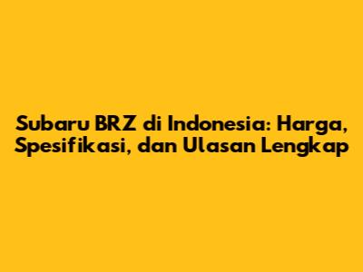 Subaru BRZ Di Indonesia: Harga, Spesifikasi, Dan Ulasan Lengkap
