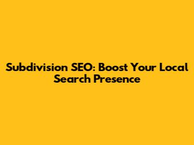 Subdivision SEO: Boost Your Local Search Presence