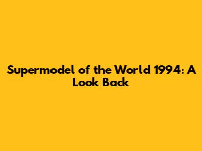 Supermodel Of The World 1994: A Look Back