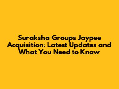 Hey everyone! Let's dive into some hot-off-the-press news regarding Suraksha Group and their recent involvement with Jaypee Infratech. This acquisition has been making waves, and we're here to break down the latest developments, the potential implications, and what this all means for you. From the financial nitty-gritty to the broader market impact, we've got you covered. So, grab a coffee, settle in, and let's unravel this complex story together. We'll be looking at the key players, the deal's structure, and the potential impact on homebuyers and investors. Stay tuned as we navigate the twists and turns of this significant acquisition.