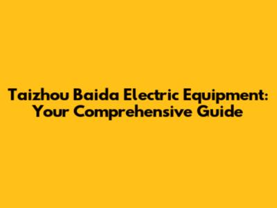 Taizhou Baida Electric Equipment: Your Comprehensive Guide