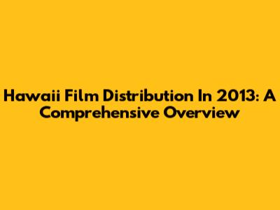 Hawaii Film Distribution In 2013: A Comprehensive Overview