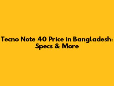 Tecno Note 40 Price In Bangladesh: Specs & More