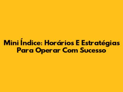 Mini Índice: Horários E Estratégias Para Operar Com Sucesso