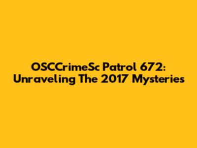 OSCCrimeSc Patrol 672: Unraveling The 2017 Mysteries