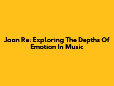 Jaan Re: Exploring The Depths Of Emotion In Music