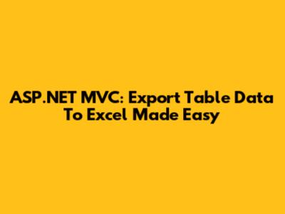 ASP.NET MVC: Export Table Data To Excel Made Easy