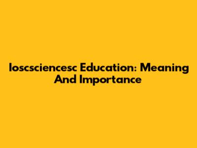 Ioscsciencesc Education: Meaning And Importance