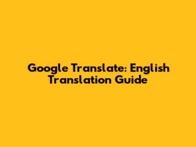 Google Translate: English Translation Guide