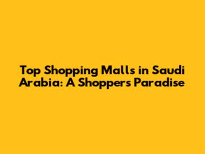 Top Shopping Malls In Saudi Arabia: A Shopper's Paradise