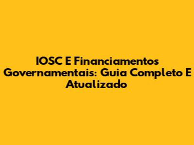 IOSC E Financiamentos Governamentais: Guia Completo E Atualizado