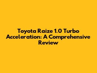 Hey everyone! Today, we're diving deep into the Toyota Raize 1.0 Turbo and, specifically, its acceleration. The Raize has been making waves, and a big part of its appeal is that little 1.0-liter turbo engine. We'll be looking at how it performs, what you can expect, and if it lives up to the hype. Buckle up, and let's get started!