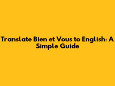 Translate Bien Et Vous To English: A Simple Guide