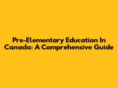 Pre-Elementary Education In Canada: A Comprehensive Guide