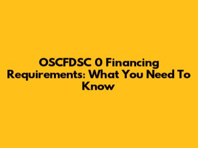 OSCFDSC 0 Financing Requirements: What You Need To Know