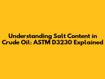 Understanding Salt Content In Crude Oil: ASTM D3230 Explained