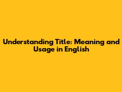 Understanding 'Title': Meaning And Usage In English