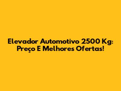 Elevador Automotivo 2500 Kg: Preço E Melhores Ofertas!