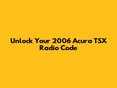 Hey there, Acura TSX owners! Ever had that moment where your car battery dies, or you have to disconnect it for some reason, and then BAM! Your radio asks for a secret code? Yeah, it's a real buzzkill, especially if you don't know what that code is. But don't sweat it, guys! Unlocking your 2006 Acura TSX radio code is usually a pretty straightforward process. We're going to dive deep into how you can get your tunes back on, without pulling your hair out. Think of this as your go-to guide for getting your audio system up and running again. We'll cover where to find that elusive code and what to do if you're still stuck. So, buckle up, and let's get this sorted!