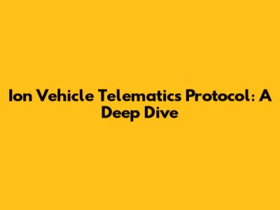 Ion Vehicle Telematics Protocol: A Deep Dive