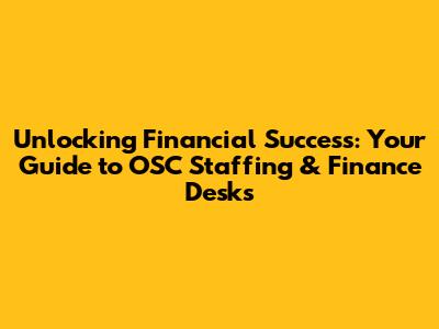 Unlocking Financial Success: Your Guide To OSC Staffing & Finance Desks