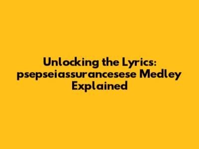 Unlocking The Lyrics: Psepseiassurancesese Medley Explained