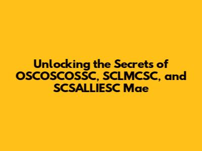 Unlocking The Secrets Of OSCOSCOSSC, SCLMCSC, And SCSALLIESC Mae