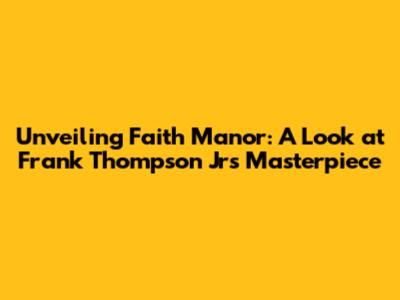 Unveiling Faith Manor: A Look At Frank Thompson Jr's Masterpiece