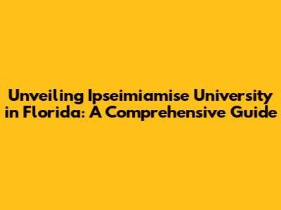 Unveiling Ipseimiamise University In Florida: A Comprehensive Guide