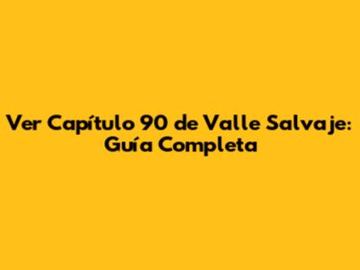 Ver Capítulo 90 De Valle Salvaje: Guía Completa
