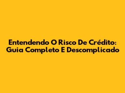 Entendendo O Risco De Crédito: Guia Completo E Descomplicado